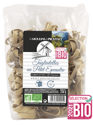 Les tagliatelles au petit épeautre (cultivé en Provence), récompensées par le label « meilleurs produits bio 2021 », goûteuses et healthy,. Les torsades 100% pois-chiche (cultivé dans le Sud-Ouest), une alternative gourmande et vegan pour les amateurs de produits sans gluten.